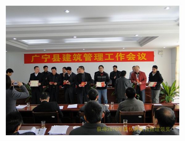 按照广宁县住房和城乡规划建设局宁住建字[2011]02号《关于表彰2010年度优良样板工程、“双优”工地、建筑管理优秀先进集体和个人的决定》的通知,由佛山市房建集团有限公司施工的广宁县百盈花园24号楼获得了四个奖励,其中百盈花园24号楼;1、获得了2010年度肇庆市安全生产文明施工优良样板工地(获得奖励5000元);2、获得2010年度优秀项目经理邓建军(获得奖励800元);3、获得2010年度、安全生产管理先进工作者李盘基(获得奖励500元);4、房建集团有限公司获得2010年度质量、安全管理先进单位(获得奖励1000元)。