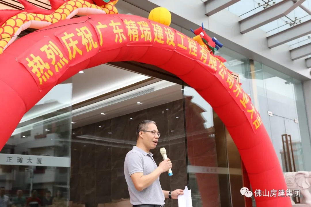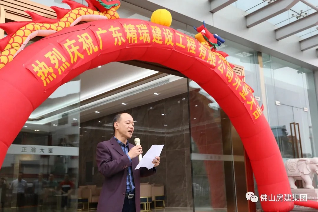 2022年3月18日上午,艳阳高照,锣鼓暄腾,礼炮齐鸣,广东精瑞建设工程有限公司举行盛大开业庆典。佛山房建集团颜琦董事长、精瑞建设公司李少阮董事长为公司开业揭牌。