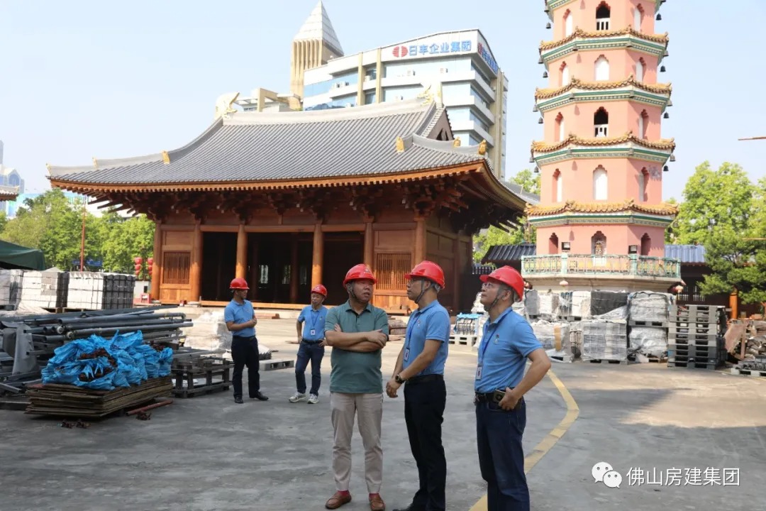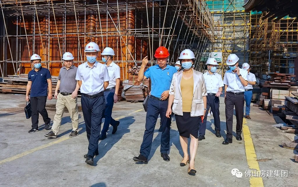 中秋佳节刚过,秋风送爽,9月13日下午,禅城区区委书记、区长严冰到仁寿寺项目现场调研,副区长李溟、区住建局局长叶美平、区委区政府办公室主任肖映泽等一行陪同。在项目现场,佛山房建集团董事总经理、仁寿寺项目总指挥邹辉銮向严书记就工人到岗、现场布置、工期安排等项目复工情况作了详细的汇报,并表示佛山房建在政府的带领下,定能克服困难,完成仁寿寺项目的建设任务。