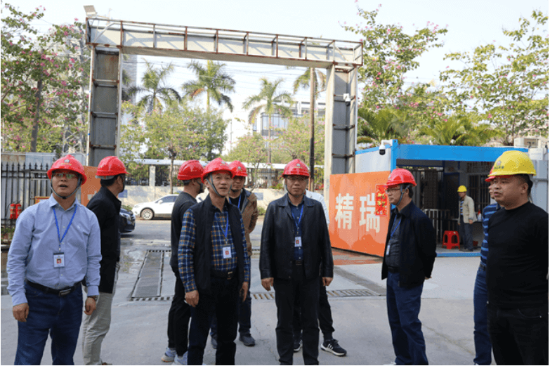 2月22日,房建集团董事长颜琦,房建集团副董事长、精瑞公司董事长李少阮,房建集团董事总经理、精瑞公司董事总经理邹辉銮等集团董事会领导一行赴项目施工现场,开展节后复工复产巡查。李航、陈源、冯健灿、曾茂青等相关领导陪同。