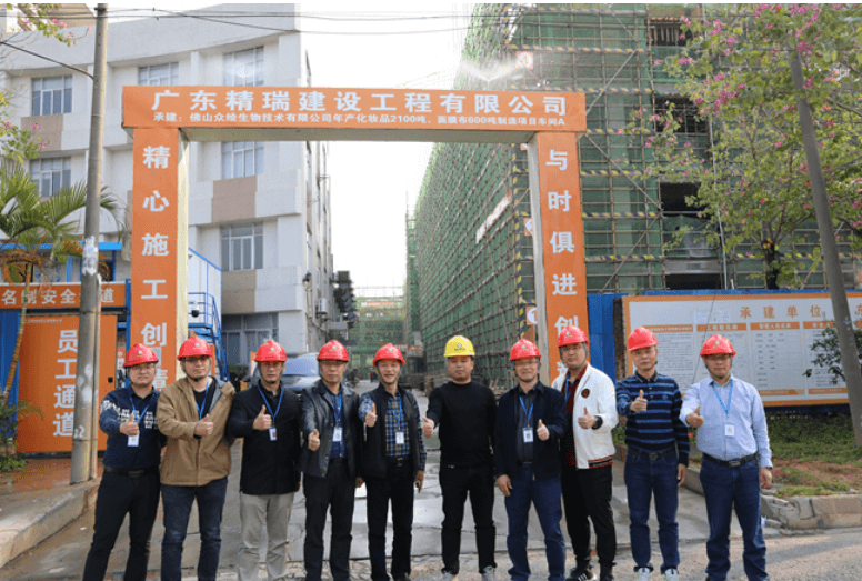 在精瑞公司承建的佛山众绘生物车间项目施工现场,领导们对精瑞公司在工程业务上的发展表示了充分肯定,并鼓励要在传承的基础上,大胆创新,寻求突破,积极开拓思路,全方位加强项目建设,拓宽项目开发渠道,夯实发展基础。