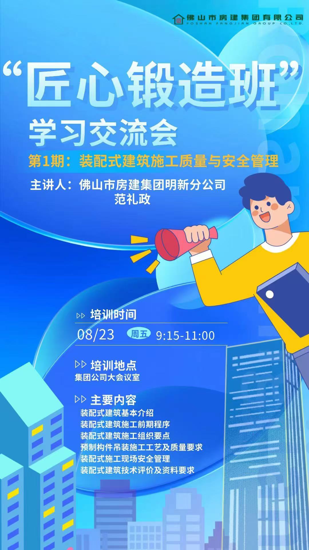 为进一步强化施工现场管理水平,提高员工理论和业务素质,促进青年员工快速成长,佛山房建集团开展“匠心锻造班”系列学习交流培训讲座。